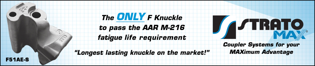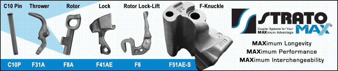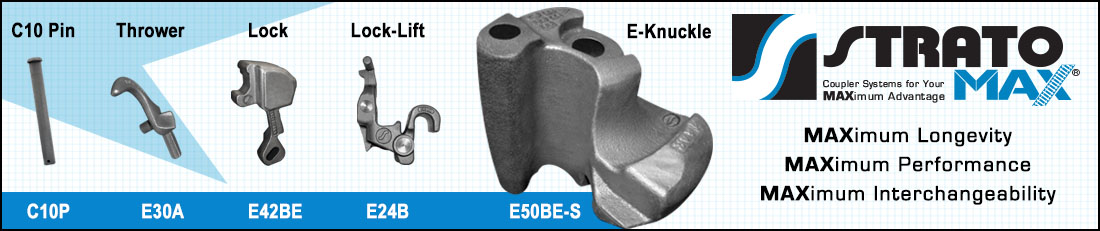 Additionally, other unique advantages of Strato include the following: We continually invest in new product development that will generate a better return on investment for our customers and support growth for the railroad industry. Our competence in large casting development enables us to produce the toughest knuckles, couplers and coupler components in the market. Always pursuing excellence, we continually fatigue test our knuckles and couplers using the same criteria as the AAR. The average fatigue life cycle of our E-knuckle is more than double the AAR requirement and the couplers have yet to fail during our rigorous testing. Based on these extraordinary results, the product line was branded StratoMAX in 2016.The StratoMAX product line includes superior couplers, knuckles, locks, lock-lift assemblies, knuckle throwers and knuckle pins.